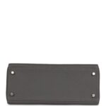 The interior is lined in Gris Etain chevre and has one zip pocket with Hermès engraved pull and two open pockets on the opposite side.