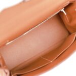 The interior is lined with gold chevre leather and has one zip pocket with an Hermès engraved pull and two open pockets on the opposite side.