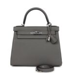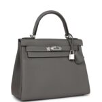 Hermès Kelly Retourne 28 Gris Meyer Togo Palladium Hardware