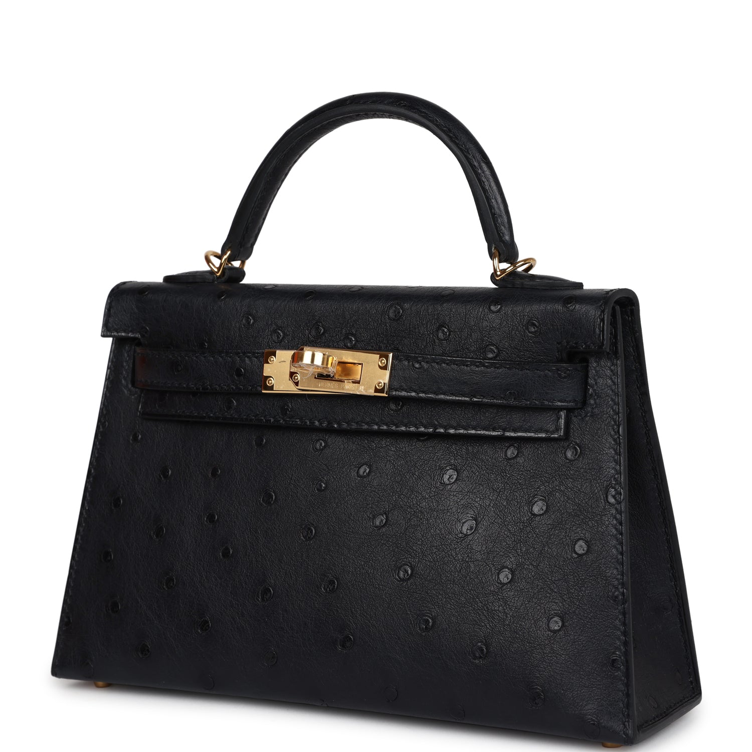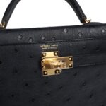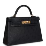 Hermès Kelly Sellier 20 Black Ostrich Gold Hardware