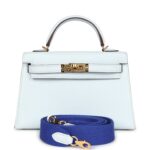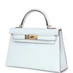Hermès Kelly Sellier 20 Bleu Brume Chevre Gold Hardware