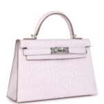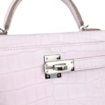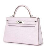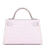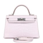Hermès Kelly Sellier 20 Mauve Pale Boreal Satin Alligator Palladium Hardware