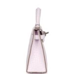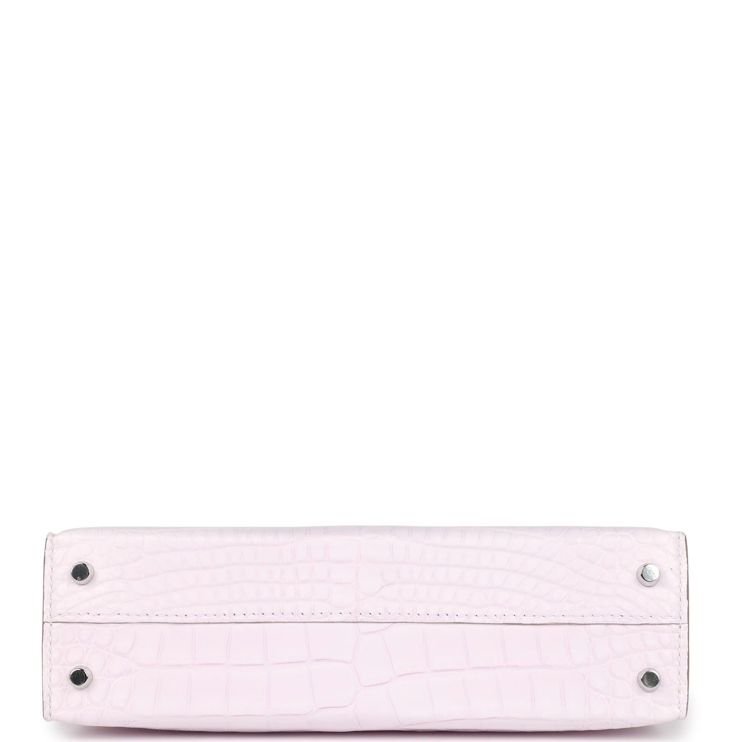 This Kelly, in the Sellier style, is in Mauve Pale Boreal Satin Mississippiensis Alligator leather with palladium hardware and has tonal stitching, two straps with front toggle closure, single rolled handle and removable shoulder strap.