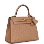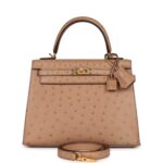 Hermès Kelly Sellier 25 Chai Ostrich Gold Hardware