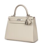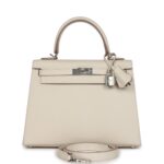 Hermès Kelly Sellier 25 Craie Epsom Palladium Hardware