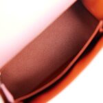 The interior is lined with Brique chevre leather and has one zip pocket with an Hermès engraved pull and one open pocket on the opposite side.