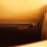 The interior is lined with Sesame chevre leather and has one zip pocket with an Hermès engraved pull and one open pocket on the opposite side.