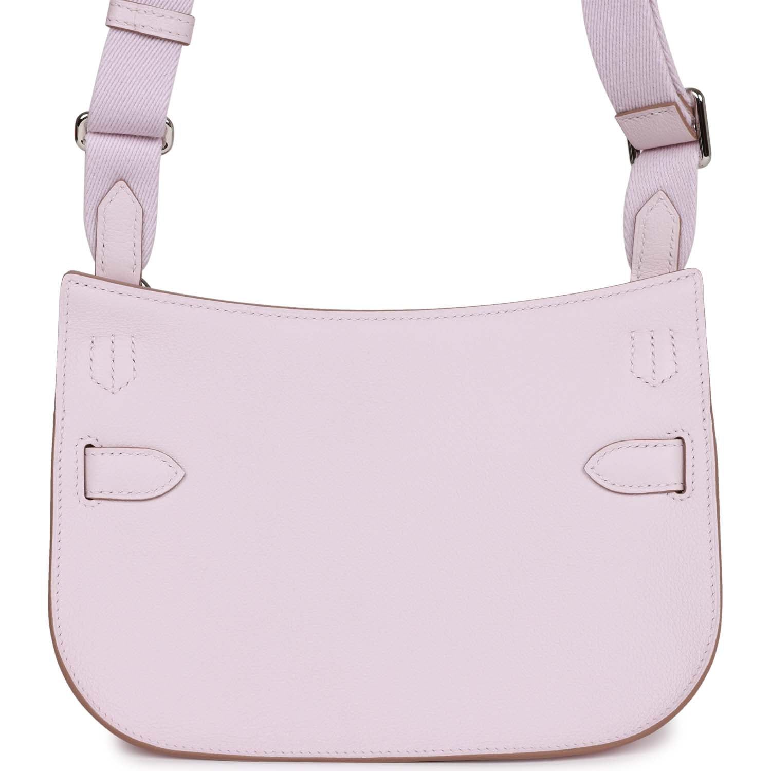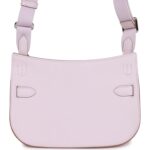 This Jypsiere mini is in mauve pale evercolor leather with palladium hardware, has tonal stitching, a single flap, two pull straps, turnlock closure, and adjustable wool shoulder strap.