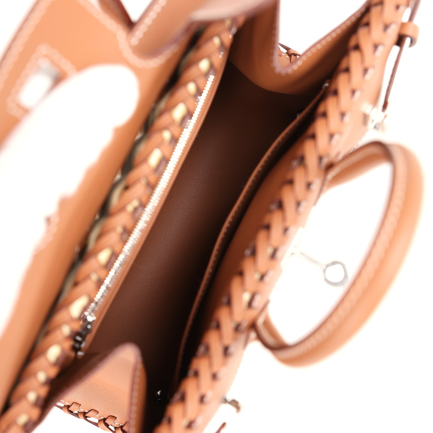 The interior is lined with Gold swift leather and has one slip pocket and one zip pocket.