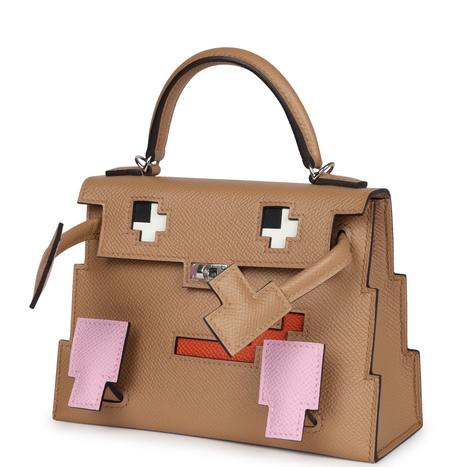 This “Quelle Idolle” Picto Kelly Doll is in Chai, Mauve Sylvestre and Terre Battue epsom leather with palladium hardware, and features tonal stitching, turnlock nose, two leather eyes, Bleu Celeste removable backpack, a removable shoulder strap, and moveable arms.