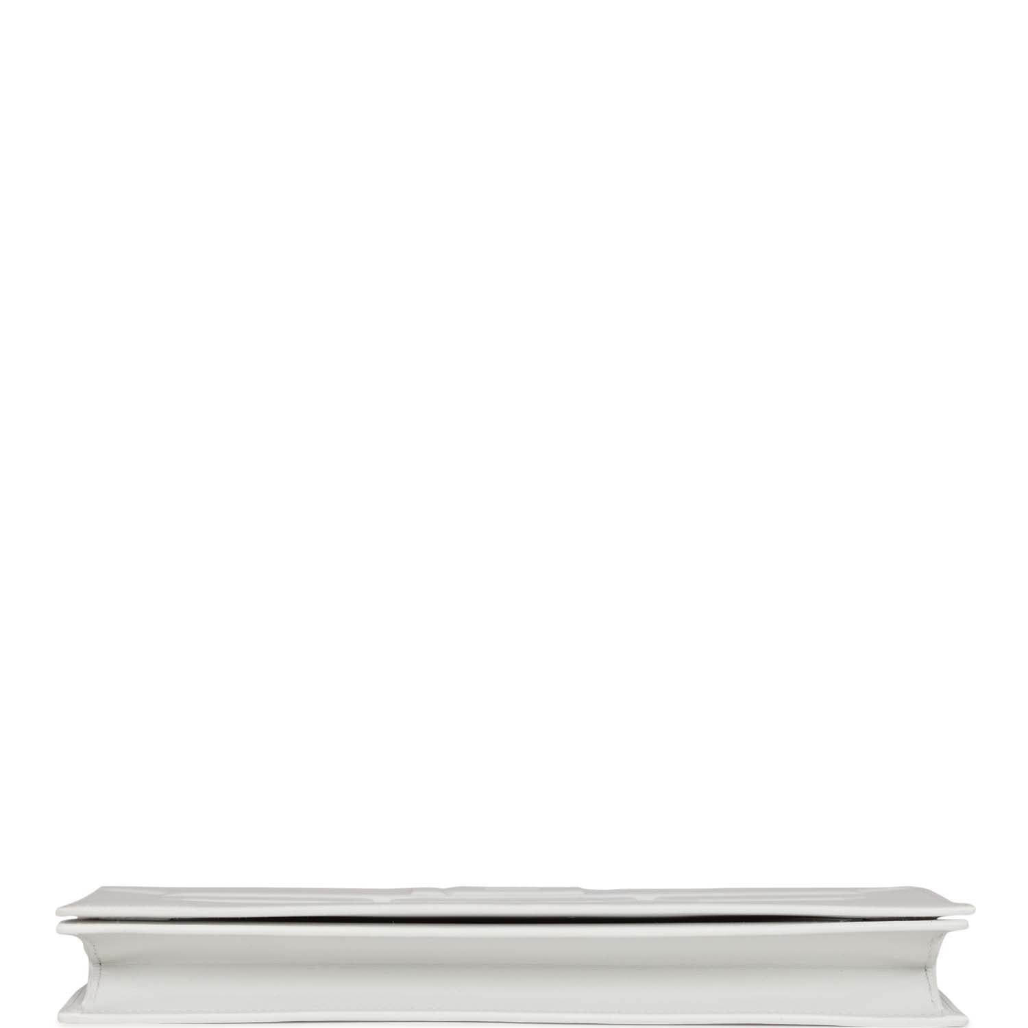 This Kelly Cut Shadow is in New White swift leather and has tonal stitching, embossed straps with embossed front toggle closure.