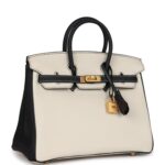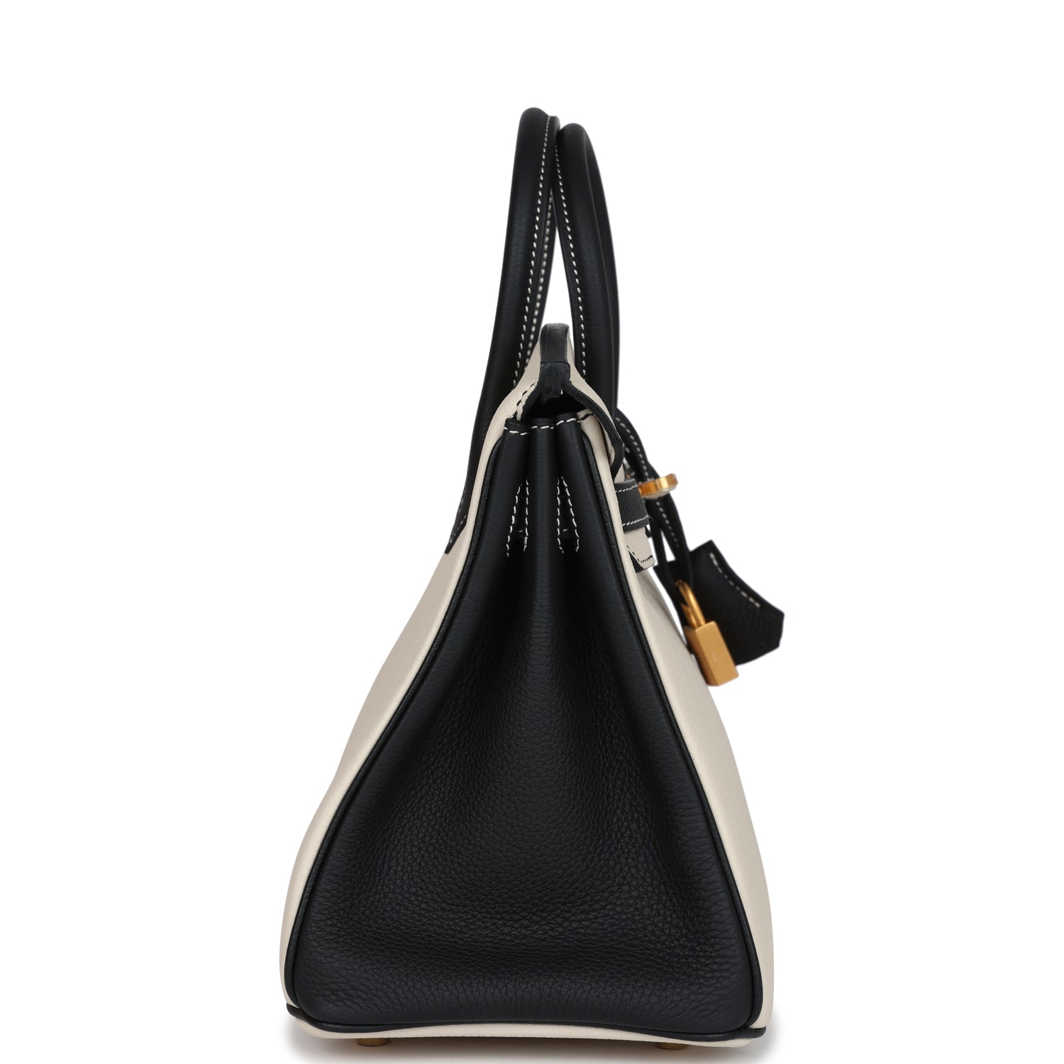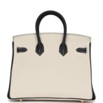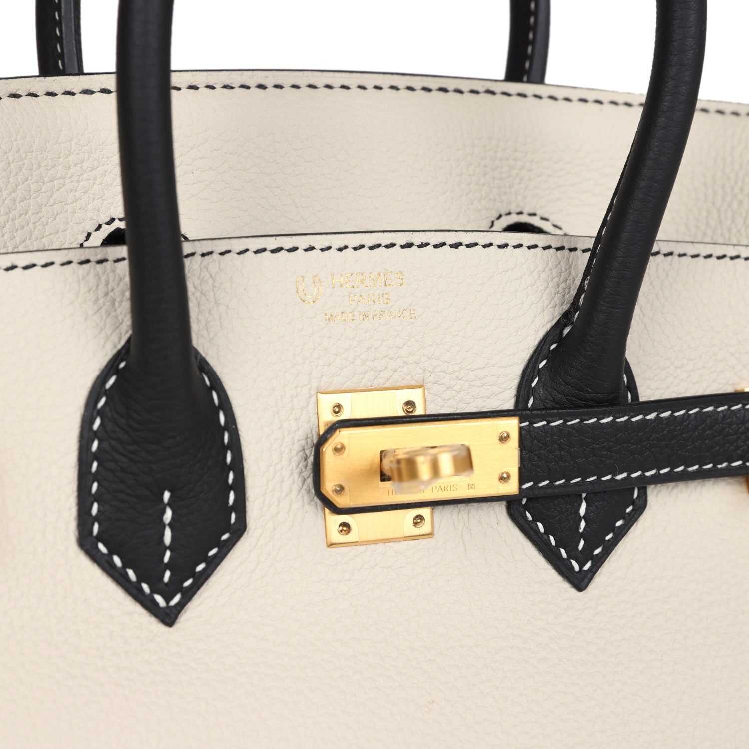 Hermès Special Order (HSS) Birkin 25 Craie and Black Togo Brushed Gold Hardware