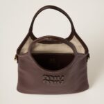 This IVY leather bag enhances a classic style with metal details and contrast stitching. The tonal Miu Miu lettering logo gives the design an iconic and immediately recognizable note.