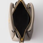 This refined and contemporary leather bag with a natural finish and inverted construction gives the design a soft, rounded shape. The compact accessory, worn as a handbag or with a detachable shoulder strap, reveals a versatile, sophisticated soul.