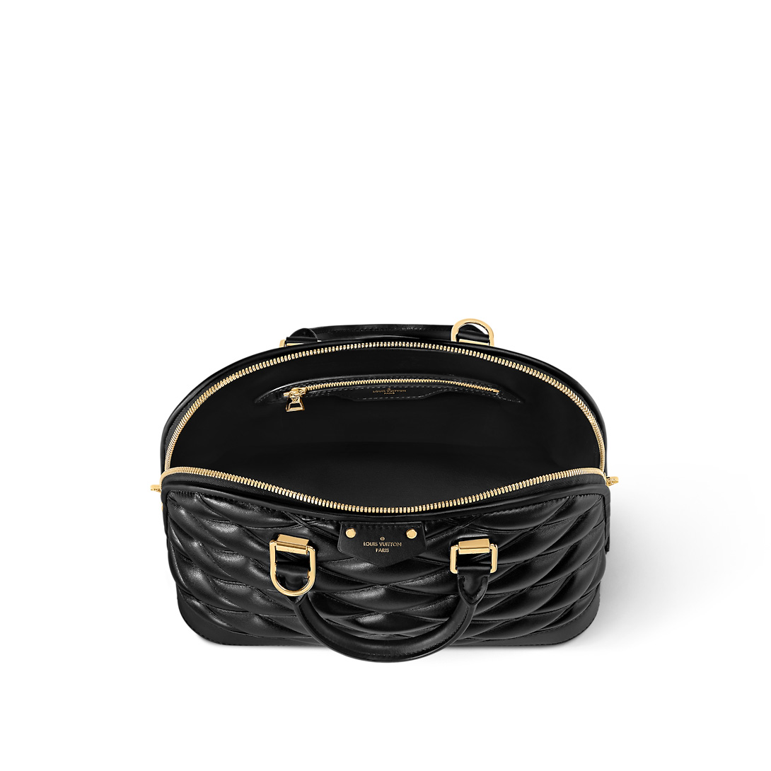 Made from lambskin featuring the House’s celebrated malletage crisscrossing pattern, the Alma PM is an elegant and practical handbag. Its signature shape is embellished with chic details like a gold-color padlock, leather key bell, and rolled-leather top handles. A removable and adjustable strap enables cross-body and shoulder wear.