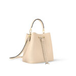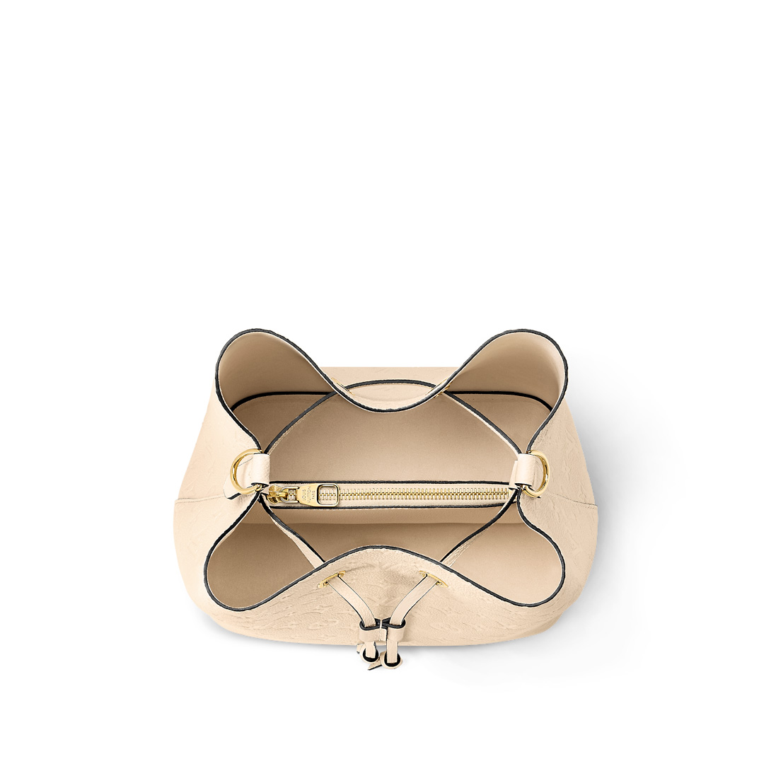 The House’s emblematic bucket bag, the NéoNoé MM, is fashioned from luminous cream-color Monogram Empreinte leather, making it stylish no matter the season. The cream-color microfiber lining and Monogram Flowers and LVs discretely embossed into the leather bring understated charm. A top handle and leather shoulder strap offer a variety of carry options.