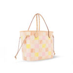 This roomy Neverfull MM tote is made from Damier Giant canvas, playfully updated in a colorway combining four different pastel tones. This functional carryall can be cinched closed with its side laces or left open for a more casual look. Inside, there’s a removable zipped pouch in matching canvas that can be used separately.