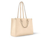 The OnTheGo MM tote now comes in cream-color Monogram Empreinte leather with a matching microfiber lining. The Monogram embossed into the grained leather brings a subtle elegance to the bag’s boxy shape. The roomy interior can easily fit a laptop while rolled-leather top handles and two long shoulder straps give carrying options.
