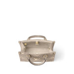 Inspired by Louis Vuitton’s famous Sac Plat from 1968, the Onthego PM tote is fashioned in Monogram Empreinte leather, embossed with a Giant Bicolor Monogram pattern. This smaller version of the original Onthego fits essentials such as an iPad Mini. Articulated top handles and an adjustable removable strap offer a variety of carry options.