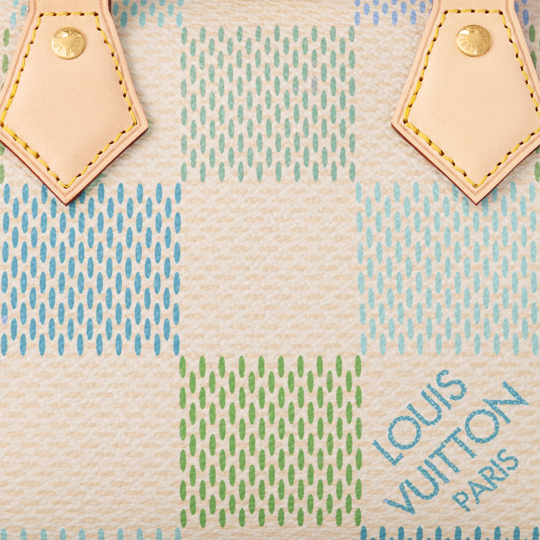 This Speedy Bandoulière 20 handbag is made from Damier Giant canvas in a fresh colorway that combines four different pastel shades, thanks to a precise digital printing technique. Inspired by the House’s classic travel bag, the distinctive shape has two rolled-leather top handles and a detachable and adjustable strap for shoulder and cross-body wear.