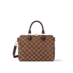 The Speedy Bandoulière 25 in graphic Damier Ebene canvas is an ideal city bag for every day. Originally created for travelers in the 1930s – the name refers to the era’s rapid transit – every feature of the Speedy’s design is iconic, from its unmistakable shape to the rolled leather handles, engraved padlock and detachable strap.