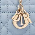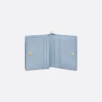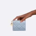 The Lady Dior Gardenia wallet is both compact and spacious. The pale blue lambskin with Cannage topstitching and detachable D.I.O.R. charms create a chic and timeless look. The compact miniature accessory can hold all the daily essentials and may easily be coordinated with other items from the Lady Dior line.