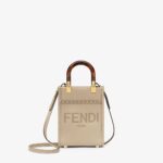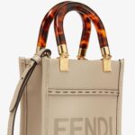 Mini Sunshine Shopper bag made of dove grey leather with hot-stamped FENDI ROMA and stiff tortoiseshell-effect plexiglass handles.