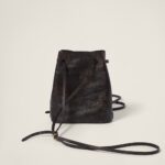 Vintage touches characterize the craftsmanship of this nappa leather pouch with an aged effect. The embossed logo and the adjustable shoulder strap accentuate its charm and versatility.
