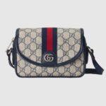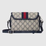 Guccio Gucci’s everlasting monogram continues to enrich new designs with a logo feel. This Ophidia mini shoulder bag is presented in a beige and blue variation of the historical GG Supreme canvas, complete with the Web stripe.