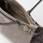- Nappa and nylon interior with center zipper compartment and zipper patch pocket