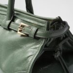 - Nappa and nylon interior with center zipper compartment and zipper patch pocket