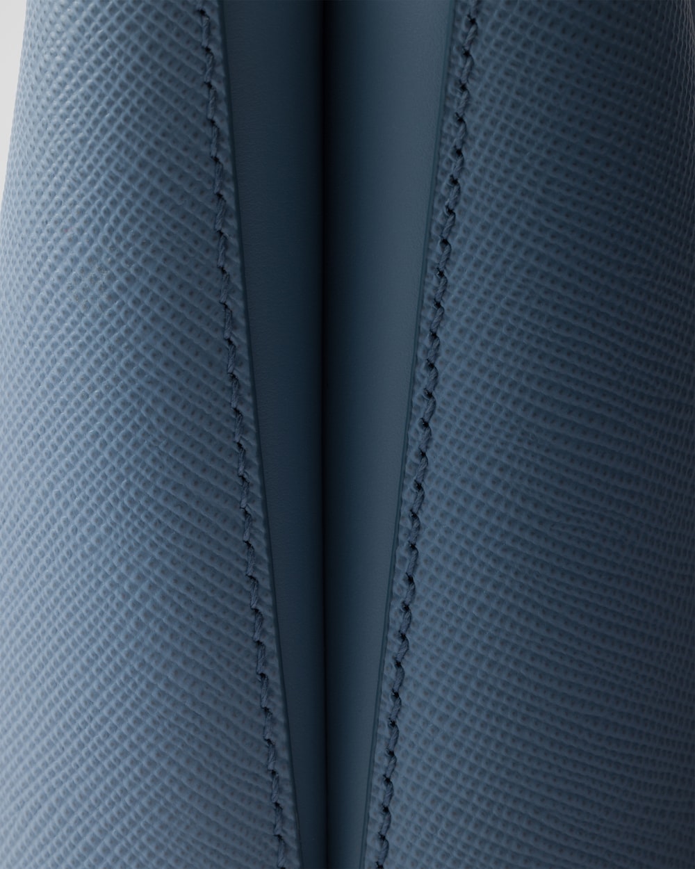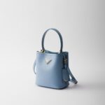 The sleek, geometric silhouette of the Prada Panier bag is reinterpreted in a compact and refined mini version. The accessory made of Saffiano leather, an emblematic material of Prada collections, is embellished with sophisticated details that express artisan excellence.