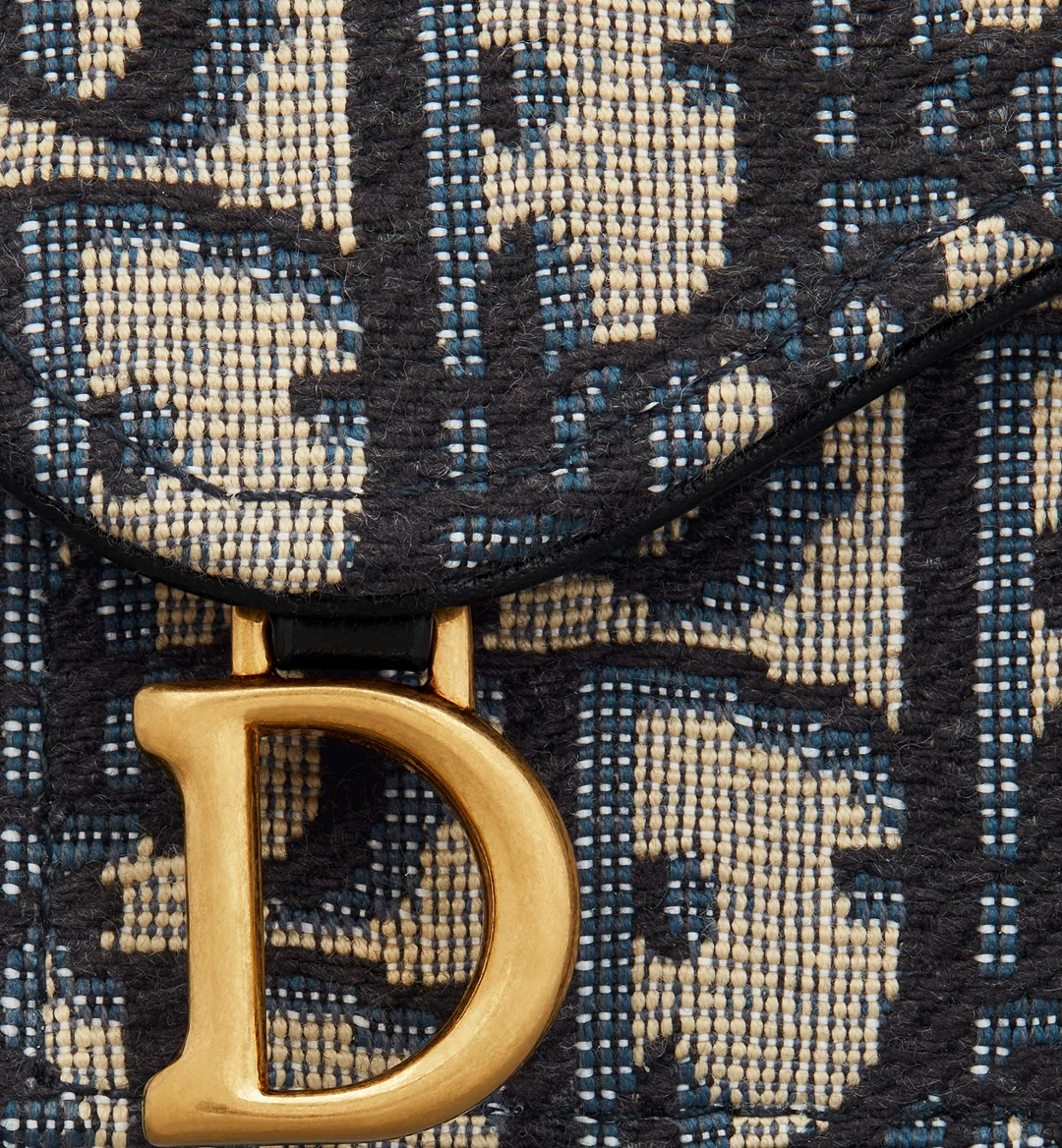 The Saddle Bloom card holder is a compact and practical alternative to the traditional wallet. It is crafted in blue Dior Oblique jacquard and can accommodate the small daily essentials. The small and easy-to-use companion may be paired with the entire Saddle line.
