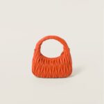 The Wander bag is reinterpreted season after season, becoming an iconic accessory of Miu Miu collections. Made of matelassé nappa leather, the bag is characterized by the sophisticated, three-dimensional effect created by the refined workmanship. The hobo shape, blending retro inspirations and contemporary elegance, becomes a new synonym of modern femininity.